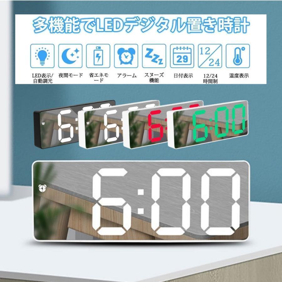 鏡面 デジタル時計 置き時計 小型 電池式 USB コードレス 温度 卓上 常時点灯 LED アラーム おしゃれ 寝室 多機能 机 光る 目覚まし時計 持ち運び 置時計 ベッド