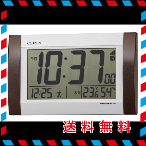 ■リズム(RHYTHM) シチズン 掛け時計 目覚まし時計 電波時計 デジタル R188 置き掛け兼用 カレンダー 温度 ・ 湿度 表示 茶 24.0×14.8×3.