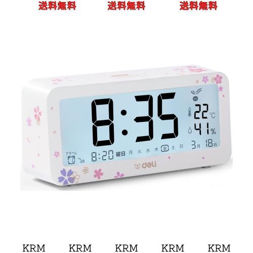 ■/Deli 目覚まし時計 電波時計 メーカー2年保証 桜の模様 文字も大きくてみやすい 乾電池式 画面が明る 温度計・湿度計付き 多機能デジタ
