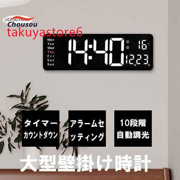 時計 壁掛け時計 LED デジタル時計 壁掛け 卓上 大文字 大型 目覚まし時計 気温/日付表示 アラーム カウントダウン カウントアップ ストップウォッチ