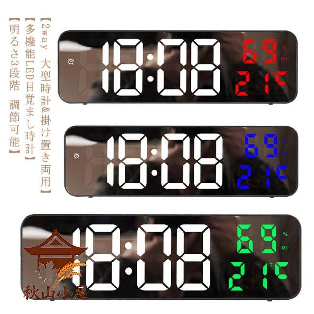 壁掛け時計 デジタル LED電子時計 2way 置時計 壁掛け時計 デジタル時計 壁掛け 大型 led 壁掛け時計 置き時計 clock 目覚まし時計 明るさ調整 USB電源 タイマー アラーム スヌーズ機能 年/月/日 温度/日期切替表示 12H/24H切替 大きい時計