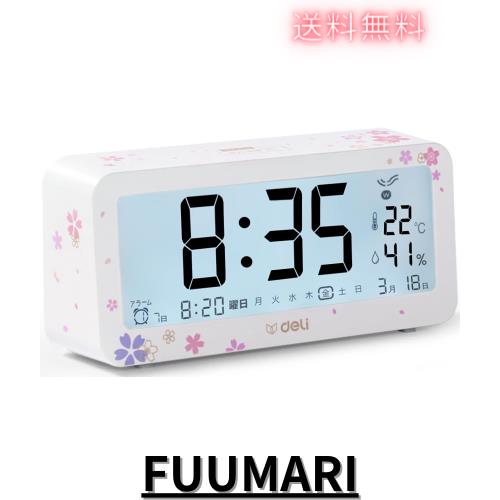 ■/Deli 目覚まし時計 電波時計 メーカー2年保証 桜の模様 文字も大きくてみやすい 乾電池式 画面が明る 温度計・湿度計付き 多機能デジタ