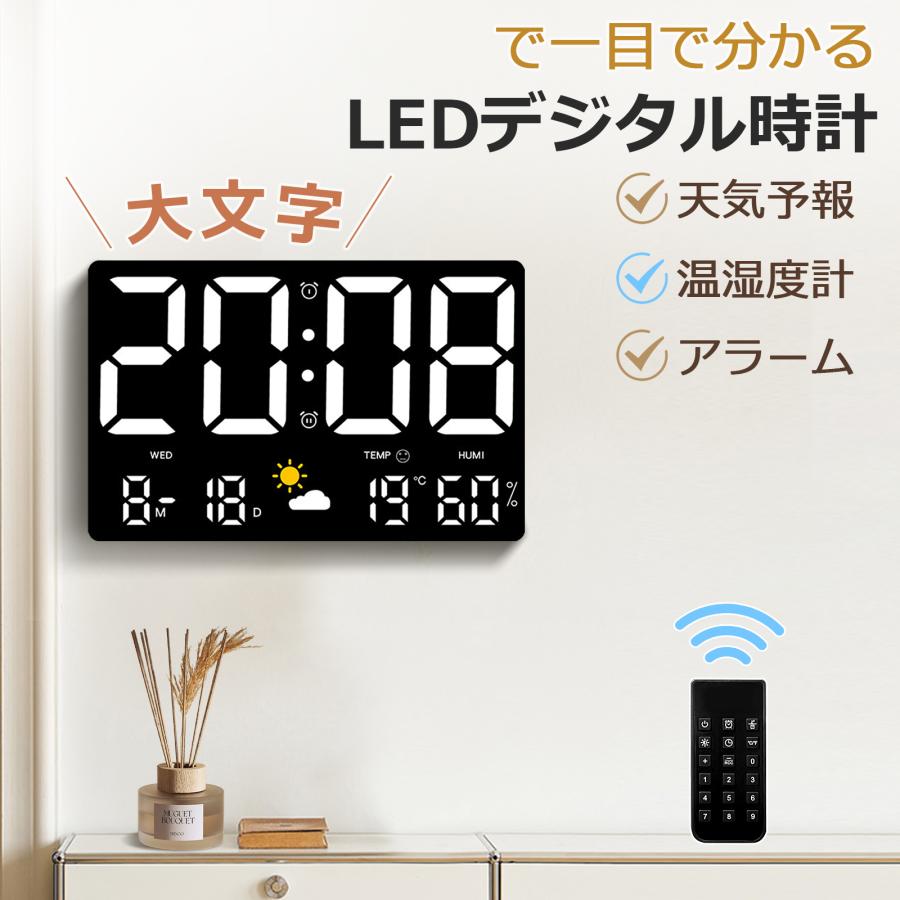 ■デジタル時計 大型 リモコン付き 壁掛け時計 デジタル 置き時計 目覚まし時計 掛け時計 温度計 アラーム 大文字 光る 爆買 ギフト オフィ