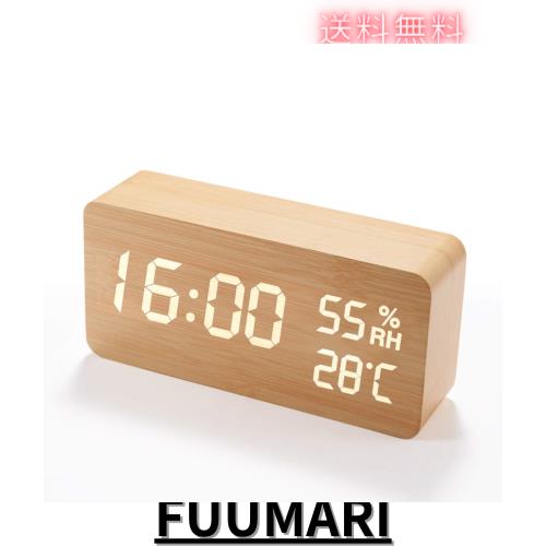 ■目覚まし時計 大音量 デジタル 置き時計 温度湿度計 卓上 おしゃれ 木目調 音声感知 節電 usb給電 プレゼント(木目調)