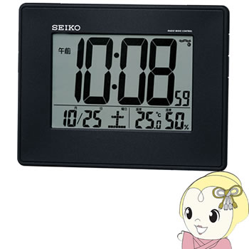 ■目覚まし時計 セイコークロック 電波 デジタル 掛置兼用 カレンダー・温度・湿度表示 大型画面 黒メタリック おしゃれ SEIKO