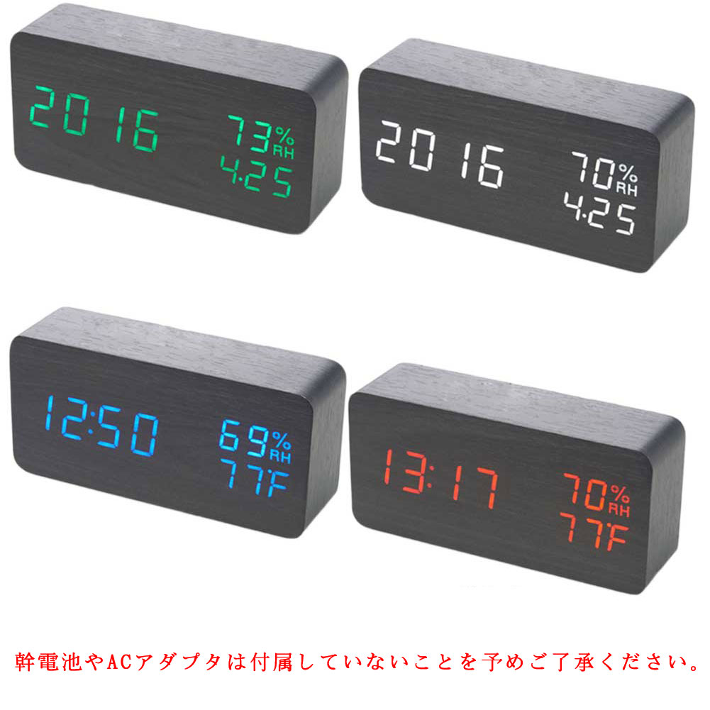 ■目覚まし時計 大音量 デジタル 木製 置き時計 温度湿度計 木目調デジタル 置き時計 大きなLED数字表示 アラーム 多機能 カレンダー付き