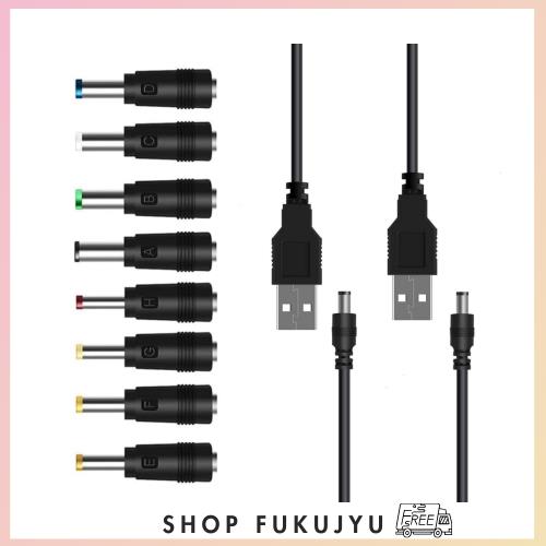 ■USBケーブル 8 in2DC電源ケーブル変換プラグ付き DC充電コード 5.5x2.5/5.5x2.1mm 扇風機 PSP ソーラーパネル ナイトライト 目覚まし時計