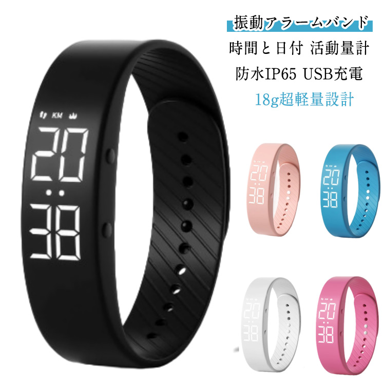 ■デジタルリストバンド スマートアラーム 音の出ない目覚まし時計 強力 デジタル式 重眠者向け リストバンド 時計 振動 目覚まし時計 音の