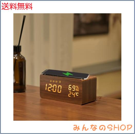 ■Electime 目覚まし時計 置き時計 おしゃれ スマホ充電 デジタル 多機能 木目 充電led時計 アナログ Qiワイヤレス 温度/湿度/アラーム 自