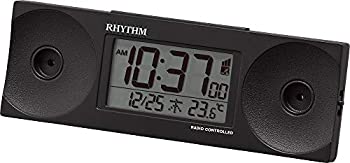 ■リズム(RHYTHM) 目覚まし時計 電波時計 電子音Wアラーム 温度 カレンダー ライト付き ブラック 10.2x15.5x6.1cm 8RZ223SR02