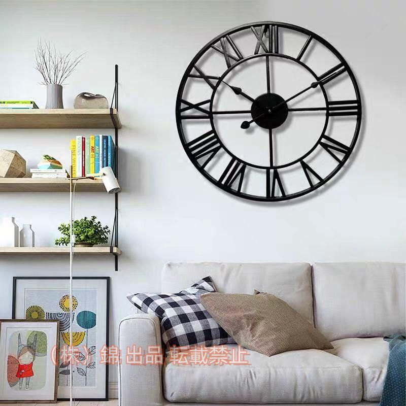 ■大きなアイアンフレーム アンティーク 雑貨 壁掛け時計 アンティークデザイン アメリカンクロック ウォールクロック