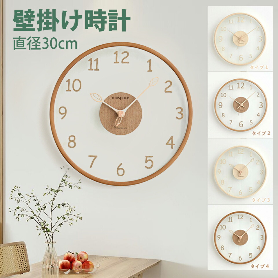 ■【2025新品-1年保証】掛け時計 木製 ガラス おしゃれ 時計 壁掛け 静音 30cm スイープ 連続秒針 静音時計 文字盤 木 木目 天然木 ウッド
