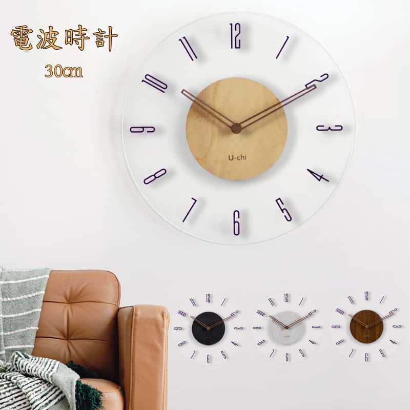 ■電波時計 壁掛け時計 電波 北欧 30cm くるみ おしゃれ 音がしない 柱時計 木製 ウッド 天然木 ブラック ホワイト ナチュラル ブラウン db