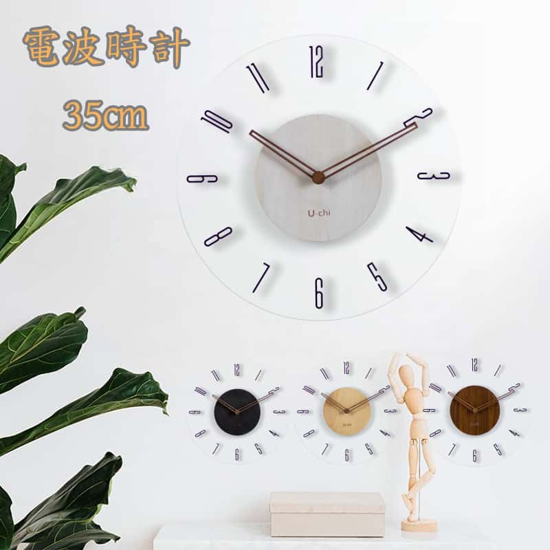 ■電波時計 壁掛け時計 アナログ 電波 35cm 北欧 くるみ おしゃれ 音がしない 柱時計 木製 ウッド 天然木 ブラック ホワイト ナチュラル ブ