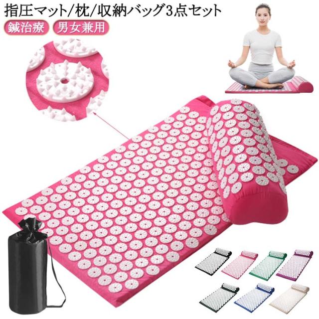 ■3点セット 鍼治療 ヨガマット 血液循環 指圧マット 3点セット フィットネス 刺さり感 ヨガシャクティマットリラクゼーション 枕 収納バッ