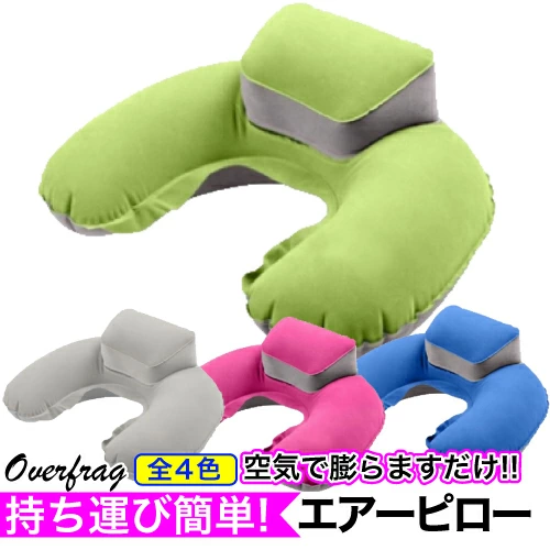 【商品説明】 飛行機の旅、車内での旅のお供に!長旅の疲れの軽減するエアーピロー! 移動時だけではなく、アウトドアでのクッション 枕や、お仕事中のひと休みに、自宅でリラックスしたい時にも非常に便利にご使用できます。 通常のエアークッションとは違い 後頭部を支えるクッションの突起部分が首の疲れを軽減します。 空気の注入は、逆止弁をつまみながら膨らますだけです。さっと膨らますことができますし、空気の注入量でエアーの硬さを調節出来ます。 使った後は逆止弁をつまみながら空気を抜いて下さい。空気の音も大きくなく周りに気を遣いません。空気を抜いた後は付属の収納ケースに入れればバッグに入れても場所を取りません。 【サイズ等詳細】 本体サイズ(本体膨らまさず平置き時):35cm×26cm 素 材:PVC・ポリエステル カラー:ブルー・グリーン・ローズレッド・グレー 同色収納ポーチ付き 収納ポーチサイズ:13cm×12cm ※送料無料はメール便でのお届けになりますので日時指定はできません。