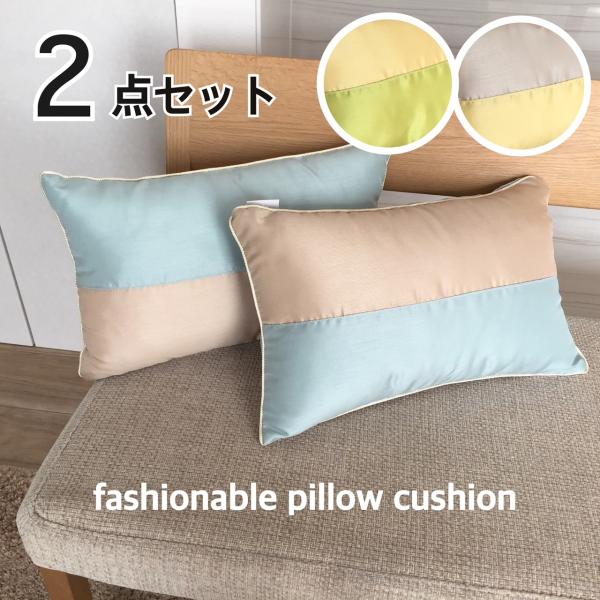 ■枕 ピロークッション 2点セット 腰まくら まくら おしゃれ 中身入り 洗える ファスナー付き シンプル ツートーン 無地 30×45cm 日本製