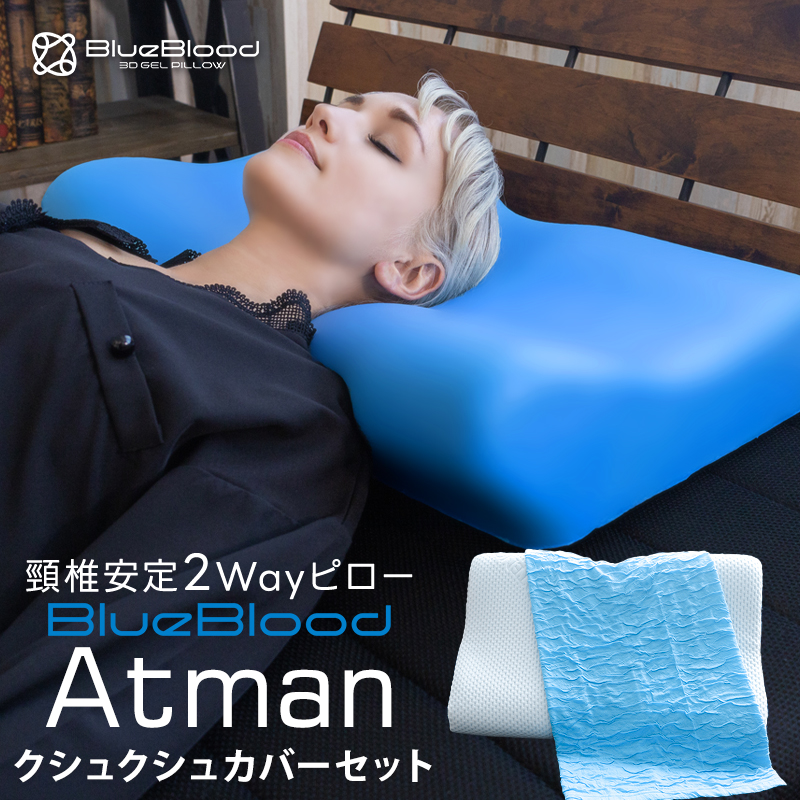 ■枕 まくら 頸椎安定快眠セット ブルーブラッド Atmanと 枕カバー のお得な セット プレゼント アートマン ピローケース プレゼント 花以