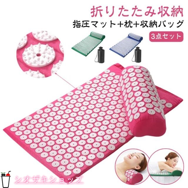 ■指圧マット 枕 収納バッグ付き 3点セット 刺さり感 指圧スパイクマット ストレス解消 トレーニング 室内 室外 ヨガシャクティマットリラ
