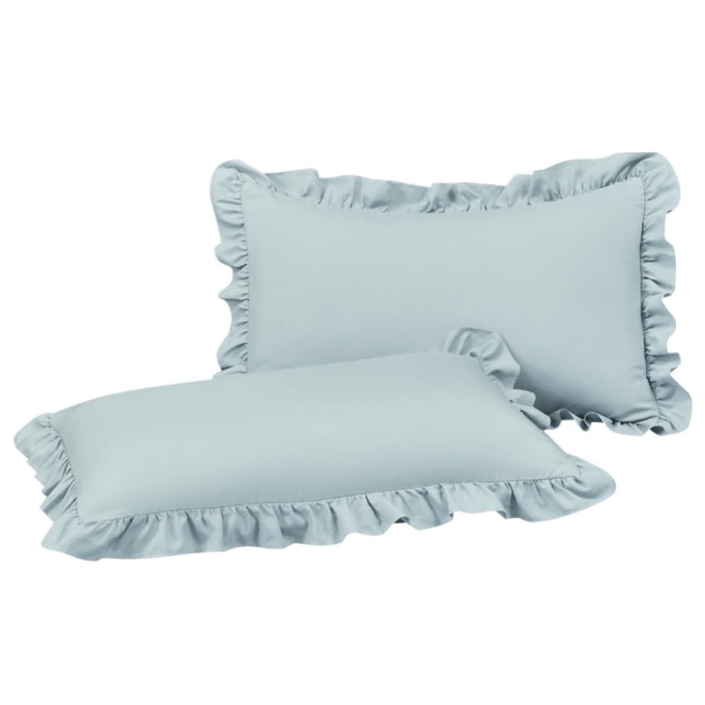 ■Yooson フリル 枕カバー(洗い替え2枚セット・43×63cm ブルー)姫系 おしゃれ 可愛い ピローケース 北欧 無地 枕 カバー 柔らか 優しい
