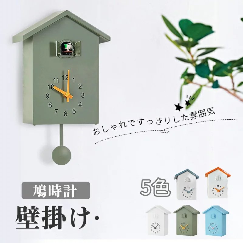 ■【wshop 】鳩時計 掛け時計 置き時計 2way 振り子 選べる5色 かわいい リビング 振り子時計 インテリア おしゃれ シンプル 大きい 静音