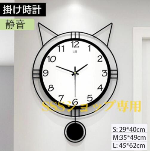 ■壁掛け時計 振り子時計 ウォールクロック 猫模様 金属製 インテリア時計 おしゃれ 北欧 掛時計 壁掛け 静音 かわいい おしゃ