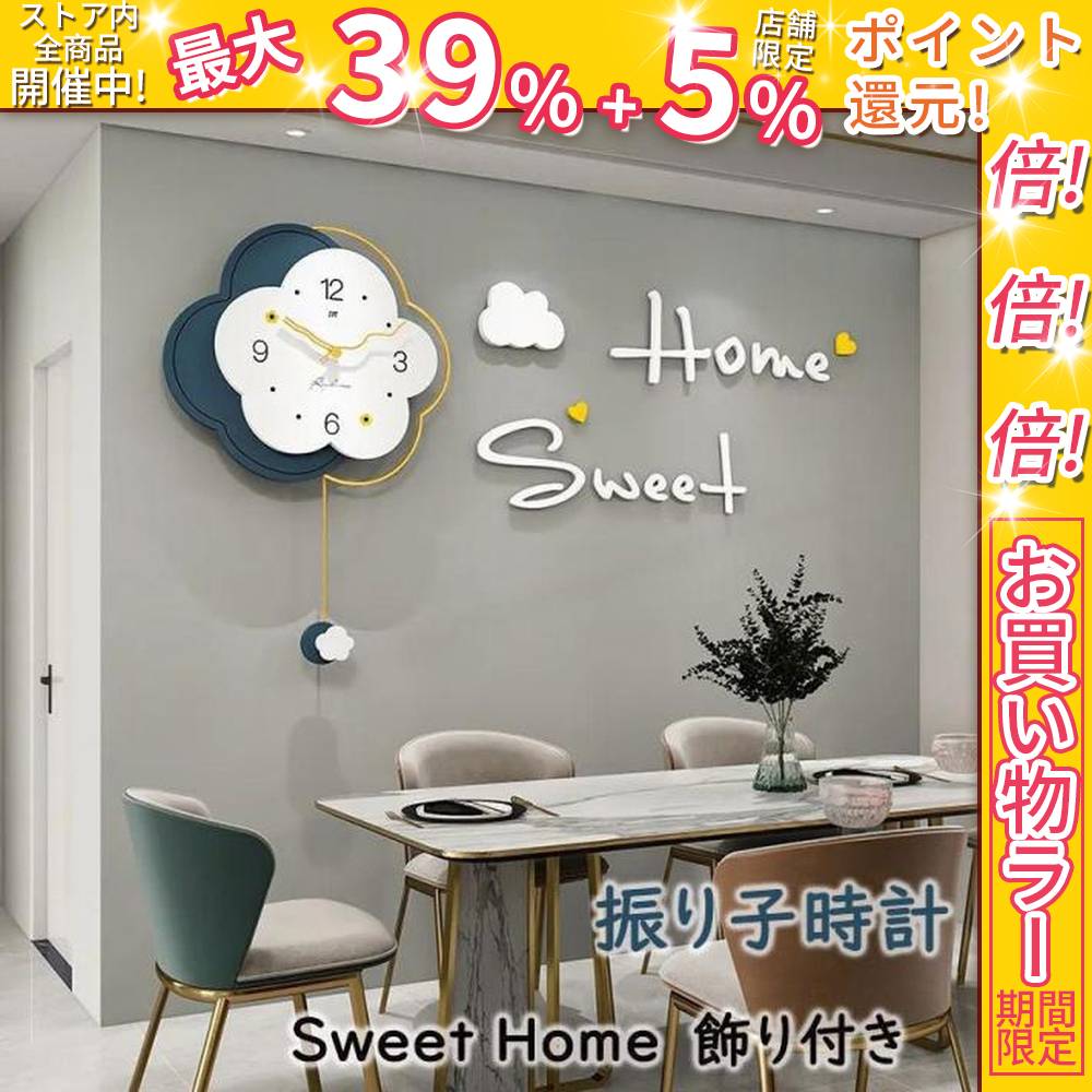 ■【クーポン対象 お買い得】振り子時計 壁掛け時計 おしゃれ クロック 花 デザイン 子供部屋 アクリル 新生活応援 インテリア 北欧 金属製