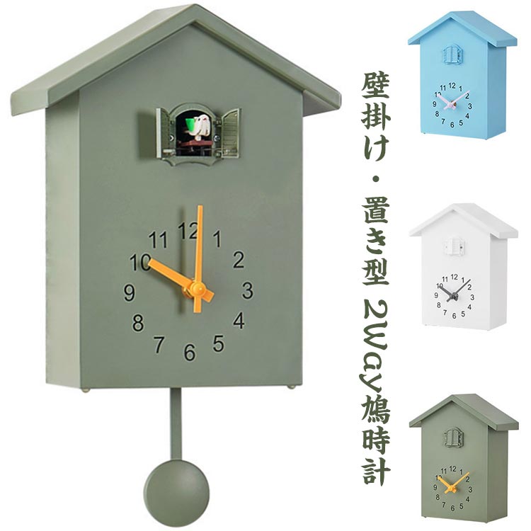 ■鳩時計 掛け時計 置き時計 2way 振り子 選べる5色 かわいい リビング 振り子時計 インテリア おしゃれ シンプル 大きい 静音 時計 ハト時
