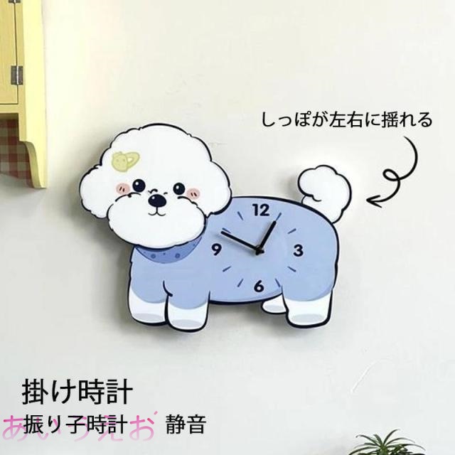 掛け時計 静音 壁掛け時計 30*40cm 犬モビールクロック 振り子時計 しっぽが左右に揺れる プードル シンプル かわいい キュート おしゃれ 小屋 子供 子供部屋 幼稚園 小学 インテリア 新築祝い 新生活 プレゼント
