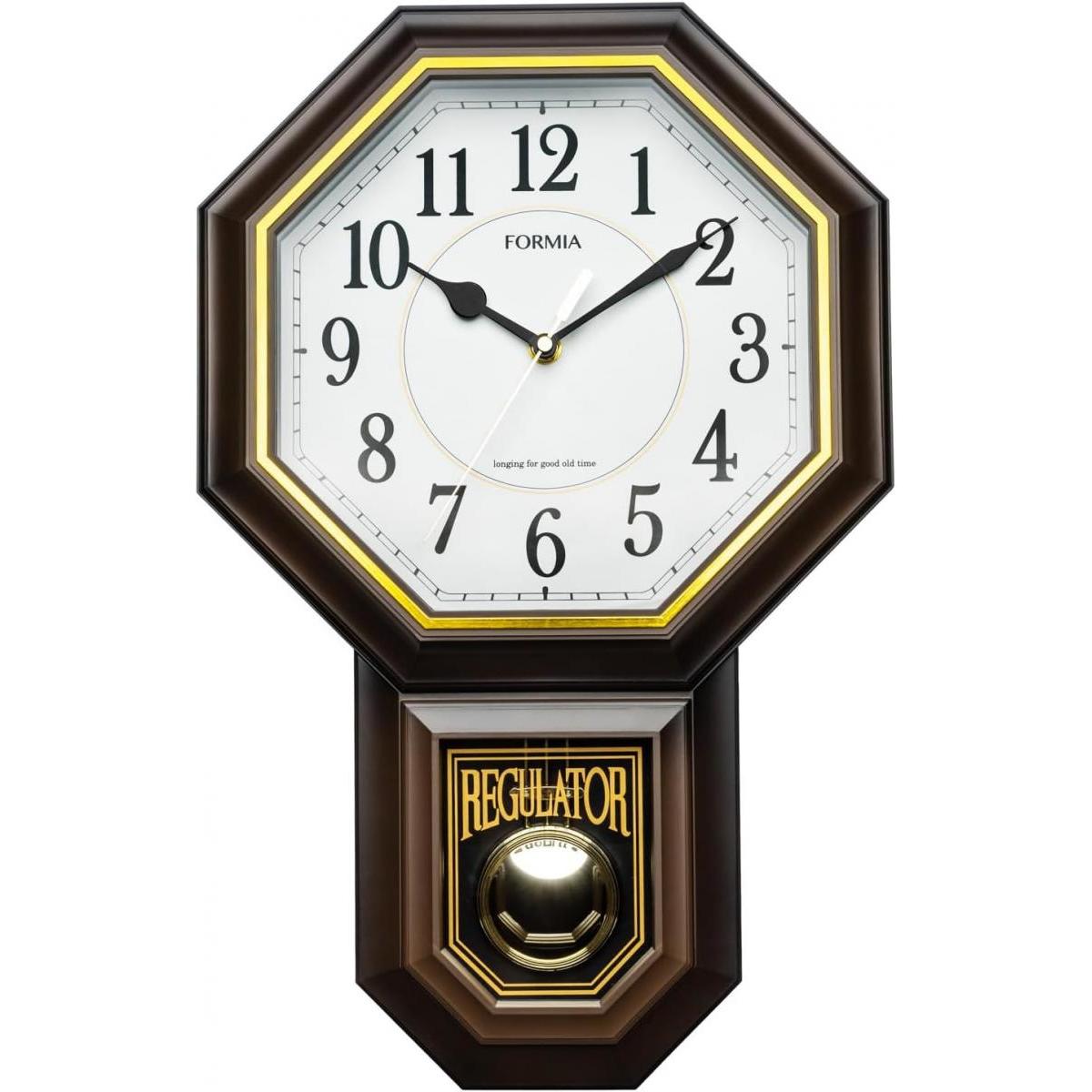 ■Formia フォルミア 掛時計 HWC-Y027W-BR ブラウン アナログ 振り子時計 正時メロディー時報 夜間鳴り止め 連続秒針