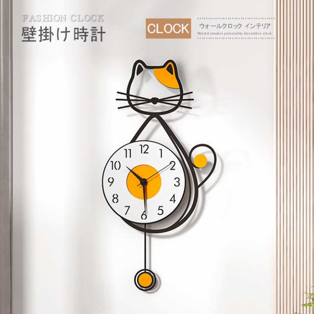 ■壁掛け時計 振り子時計 猫 可愛い アクリル 掛け時計 ウォールクロック リビングルーム インテリア時計 おしゃれ 北欧 壁掛け