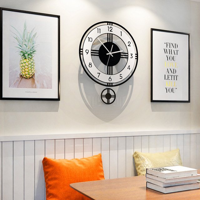 ■壁掛け時計/壁時計/振り子時計/振動式/サイレント/モノクロ/電池式/クォーツ/クロック/アナログ時計