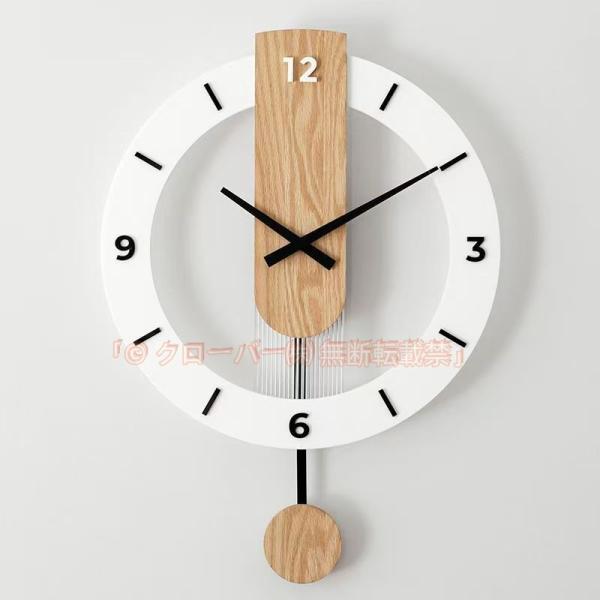 ■壁掛け時計 壁掛時計 掛け時計 木製 振り子時計 モダン シンプル 静音 北欧 クラシック ナチュラル ウォールクロック デコレーション 個
