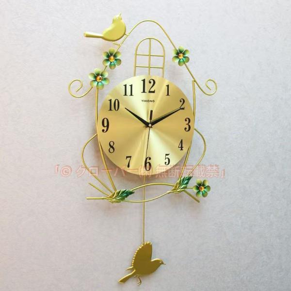 ■振り子時計 掛け時計 鳥 クロック 花 静音 おしゃれ クローバー株式会社 デザイン 金属製 新生活応援 インテリア 部屋飾り 北欧 新築祝い