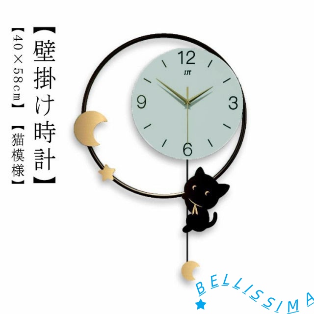 ■金属製 ウォールクロック 振り子時計 壁掛け時計 猫模様 子供部屋 シンプル おしゃれ インテリア時計 北欧 リビング 時計 おしゃれ ギフ