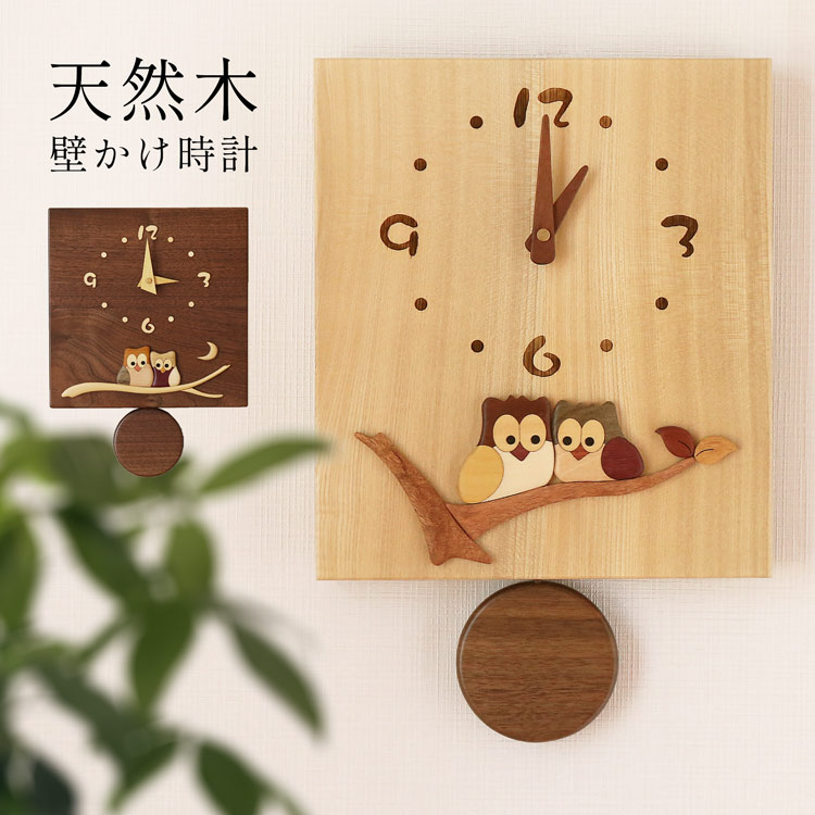 ■壁掛け時計 おしゃれ かわいい 天然木 寄せ木 ふくろう 木製 日本製【名入れ 可能】 時計 壁掛け 掛け時計 振り子時計 インテリア 北欧 2