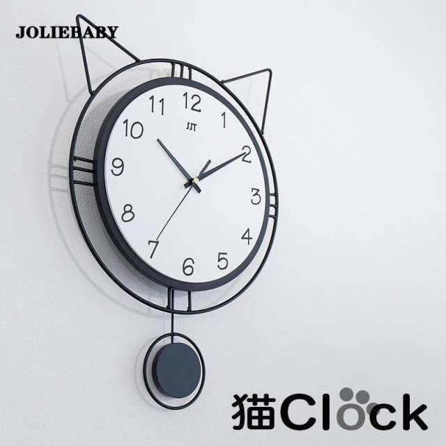 ■金属製 ウォールクロック 振り子時計 壁掛け時計 猫模様 子供部屋 シンプル おしゃれ インテリア時計 北欧 リビング 時計 おしゃれ ギフ