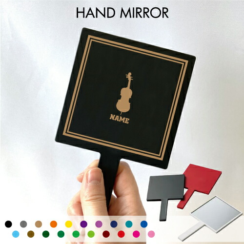 ■「コントラバス」名入れ手鏡 コンパクトミラー メイク道具 携帯ミラー ハンドミラー スクエア シンプル 可愛い コスメ 美容 ミラー 鏡 角