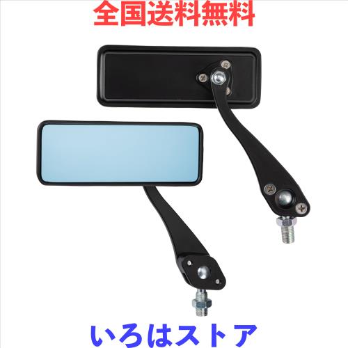 ■KEMIMOTO バイク ミラー 10mm 左右セット汎用 オフロードミラー 角型 取付簡単 角度調整可能 ブラック KM3112