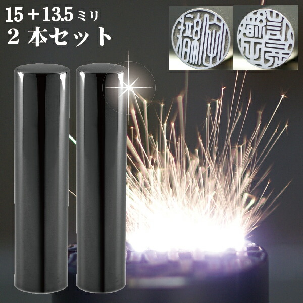 ■実印 チタン 印鑑 セット 『インペリアルブラック ミラー チタン 2本セット 15mm+銀行印13.5mm』(赤ちゃん ハンコ おしゃれ フルネーム