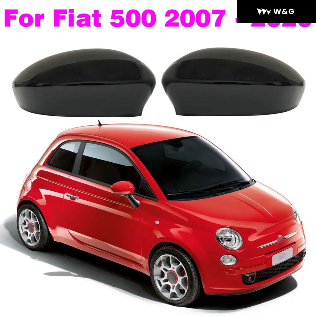 ■フィアット 500 2007 - 14 - 2020 ミラー カバー キャップ リアビューミラー ケースカバー ブライトブラック カバー