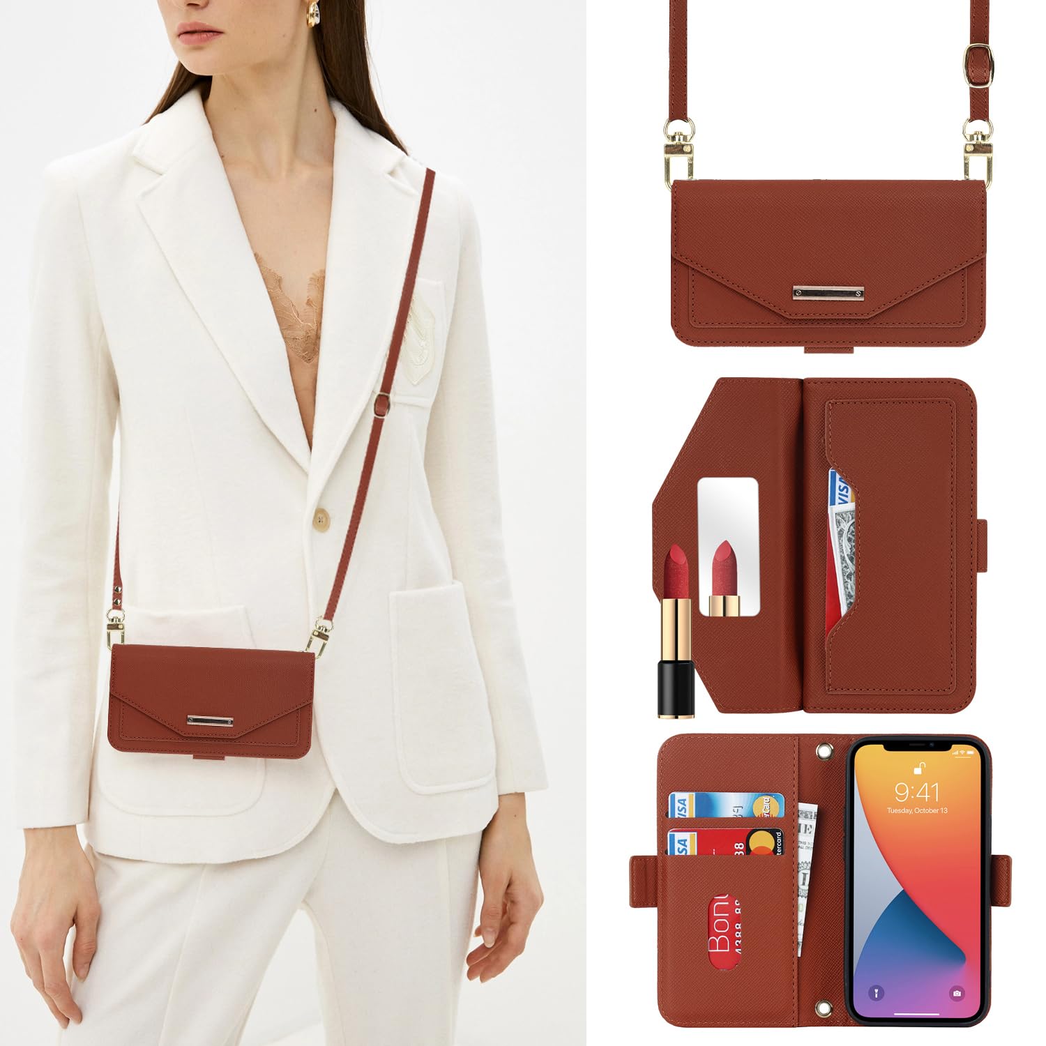 ■【Hamany】 いphone12 ミニ ケース ショルダー 鏡 iphone 12 mini ケース 手帳型 ストラップ付き ミラー カード収納 財布 アイホン12ミニ
