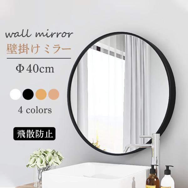 ■鏡 壁掛け ミラー ウォールミラー 飛散防止 40cm 壁掛け鏡 丸型 姿見鏡 全身鏡 おしゃれ 洗面所 化粧鏡 北欧 インテリア 玄関 トイレ 寝