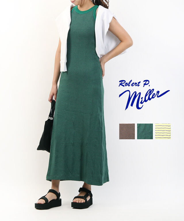 ■ミラー カップ付き パネルリブ バックスリット アメスリワンピース Prib AS OP MILLER RM241-2168 国内正規品 220403 ボーダー ノースリ