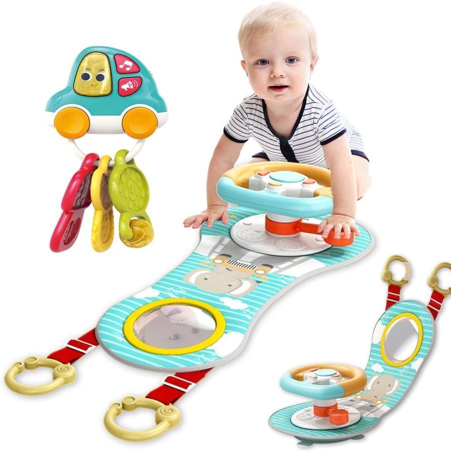■ベビーカーおもちゃ ハンドルおもちゃ 赤ちゃん おもちゃ ミラー、音楽ライト、運転音付きチャイルドシートおもちゃ 模擬運転 ステアリン