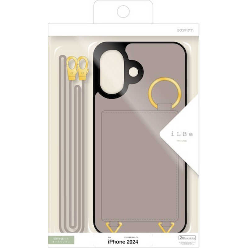 ■ラスタバナナ iPhone 16(6.1インチ)iLBE TPUケース ミラー+カードポケット ショルダーストラップ付き ベージュ 8177IP461TPBE