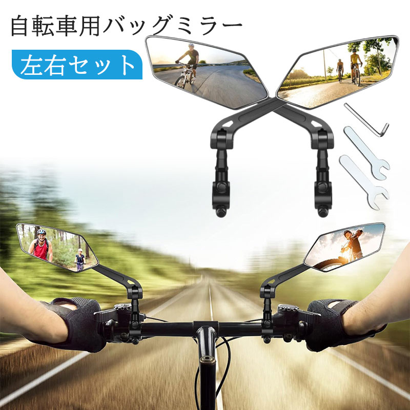 ■サイクルミラー 自転車 ミラー バイク 鏡 バックミラー 左右セット 簡単取り付け 後方確認 事故防止 ハンドルバー 20-24m