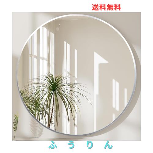 ■鏡 壁掛けミラー アルミフレーム 壁掛け鏡 バスルームミラー 丸型ミラー 化粧鏡 リビング ウォールミラー 玄関 洗面 トイレ 円形(シルバ
