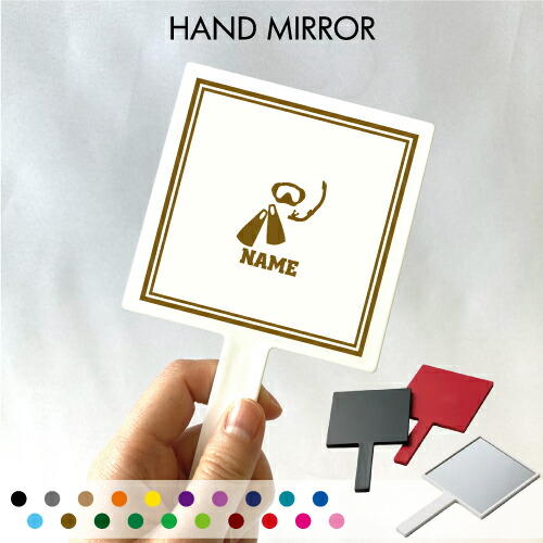 ■ダイバー 名入れ手鏡 コンパクトミラー メイク道具 携帯ミラー ハンドミラー スクエア シンプル 可愛い コスメ 美容 ミラー 鏡 水 潜水