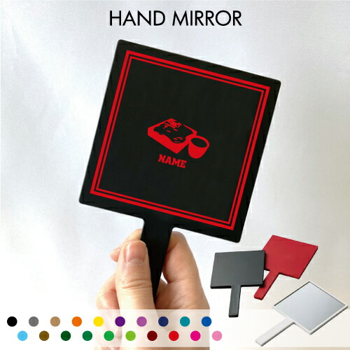 ■「そば」名入れ手鏡 コンパクトミラー メイク道具 携帯ミラー ハンドミラー スクエア シンプル 可愛い コスメ 美容 ミラー 鏡 角型 soba